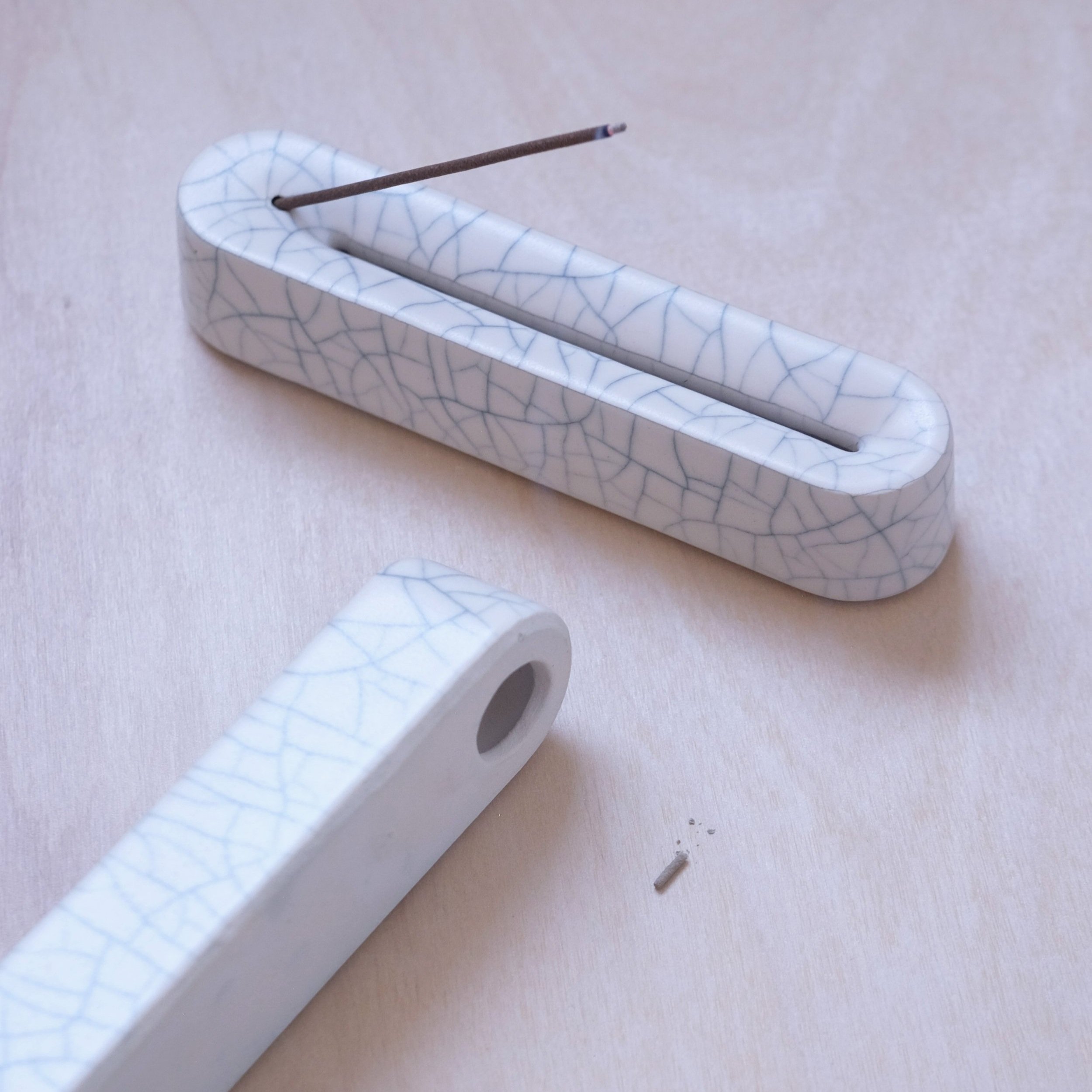 Incense holders were slip-cast in porcelain